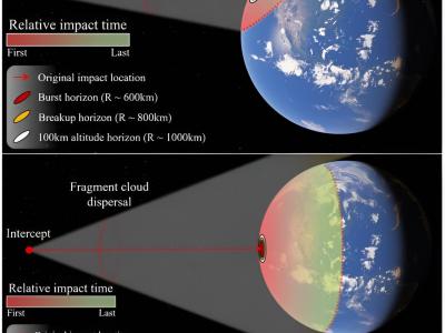 小(上)和大(下)小行星拦截的碎片云。信用:uux.cn/鲁滨2021(神秘的地球uux.cn)据《...