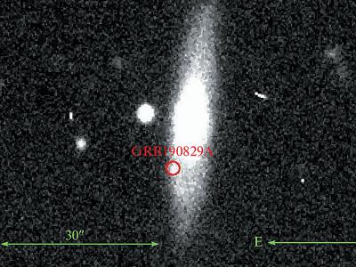 GRB 190829A及其相关超新星在宿主星系中的位置。这幅图像是在GRB被探测到大约5天后...