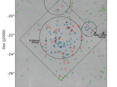 覆盖在光学数字巡天(DSS-2) 𝑟-band图像上的SMUDGes第三目录中的波江座超扩...