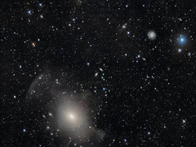 这幅富含星系的图片展示了对称的洋葱状层壳星系NGC 3923,图片由美国能源部暗能量相...