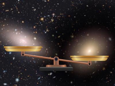 一个包裹在暗物质光环中的传统星系(ESO 325-G004)和星系NGC 1277(左侧)之间的比较,...