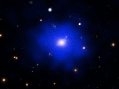 出乎意料的平静和遥远的星系团SPT-CL J2215-3537被发现了。图片鸣谢:X射线:NASA/CX...