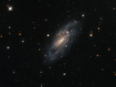 哈勃太空望远镜拍摄的飞马座螺旋星系UGC 11860,螺旋星系模糊的椭圆形斜对角倾斜,...