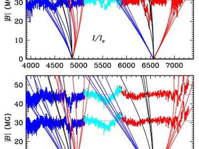 Schimeczek & Wunner (2014)计算的Hβ和Hα成分的波长与WD 0810–353光谱的比较...