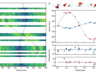 WD 0032317的相位径向速度曲线。a,wd 0032317的H𝛼线的拖尾UVES光谱(蓝色代...