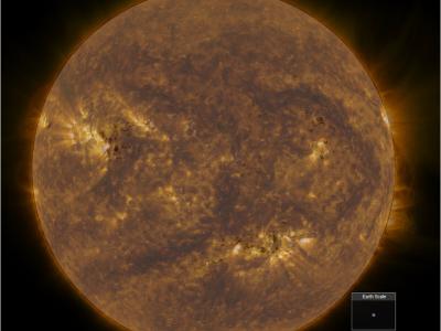 几百万度太阳日冕等离子体的极端紫外辐射。鸣谢:NASA太阳动力学观测站(SDO)航天器上...