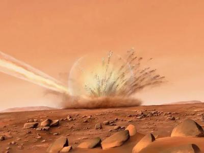 艺术家对2021年12月24日火星上Amazonis Planitia地区的陨石撞击的印象。资料来源:...
