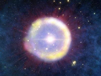 这位艺术家的概念展示了一个假设的事件,称为超千新星。一颗大质量恒星在超新星爆炸...