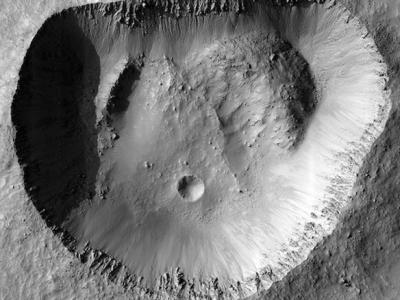 在这张影像中可以清楚地看到陨石坑边缘的细节。外侧和内壁单独存在的巨石显示这个陨...