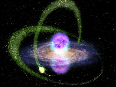 这位艺术家的概念展示了一个假设的事件,称为超千新星。一颗大质量恒星在超新星爆炸...