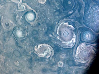 NASA朱诺号在木星北极附近捕捉到一个引人