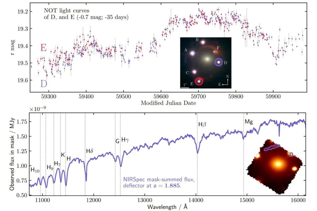 天文学家发现两个星系在引力作用下呈复合透镜状排列。Graphic: uux.cn/Dux et al. ...