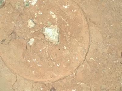 美国国家航空航天局的毅力号探测车发现了一块岩石,上面有奇怪的绿色斑点(见左上角...
