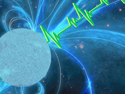 一幅插图显示了一颗中子星脉冲星爆发出快速的射电暴。(图片来源:uux.cn/Robert L...