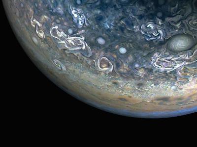 美国国家航空航天局的朱诺号任务捕捉到了木星上色彩斑斓且混乱的云层。图像数据:u...