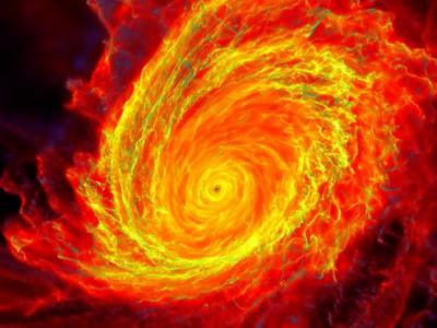 气体围绕黑洞旋转的模拟。颜色表示气体的密度,较亮的颜色表示较高的密度。(图片来...