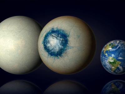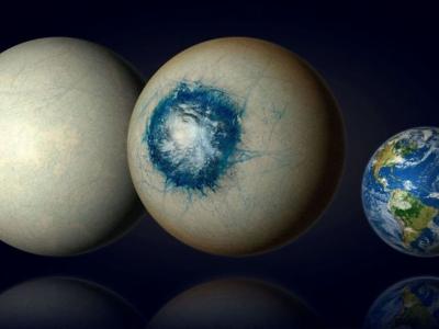 温带系外行星LHS 1140 b可能是一个完全被冰覆盖的世界(左),类似于木星的卫星木卫...