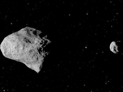 一张双星小行星的宇宙飞船照片。天文学家最近在一颗巨大的小行星掠过地球时发现了一...