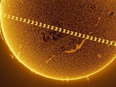 这张图片显示了国际空间站(ISS)在太阳盘前穿过时的剪影(图片来源:uux.cn/Migue...