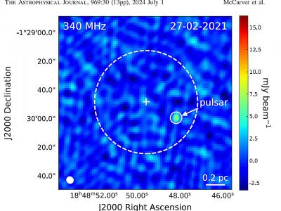 GLIMPSE-C01的VLITE 340 MHz图像,2021年2月27日。干净光束在左下角显示为白色椭圆...