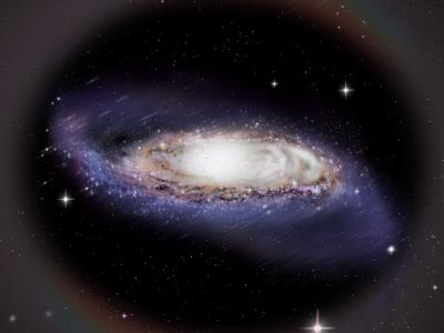 在这位艺术家的印象中,星系盘扭曲在暗物质光环的扭矩下“优雅地跳舞”。来源:上海...