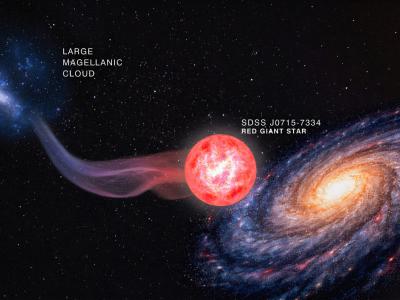 一位艺术家对红巨星SDSS J0915-7334的构想(非按比例),它诞生于大麦哲伦云附近,...