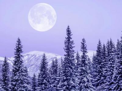 满月升起在雪山之上。(图片来源:Misha Kaminsky/Getty Images)(神秘的地球uux....