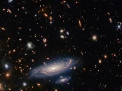 詹姆斯·韦伯太空望远镜拍摄的一组星系和恒星的图像,以惊人的细节显示了一个位于1...