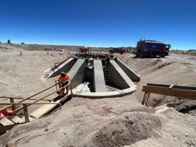 一名施工人员在弗雷德·杨亚毫米望远镜的基础上进行预制工作。(康奈尔大学)(神秘...