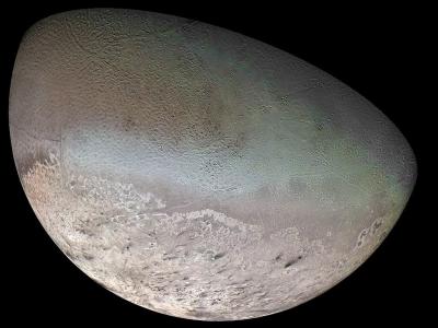 1989年,NASA的旅行者2号拍摄了海王星最大的卫星海卫一。资料来源:NASA/JPL Calte...