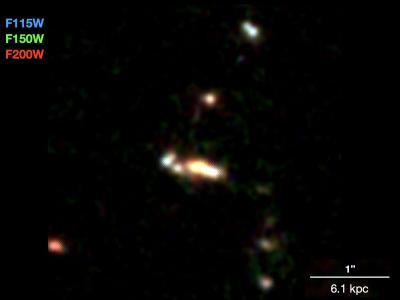 一组小星系,在130亿年前就被发现,很可能正在形成一个大星系。这些颜色由三种不同...