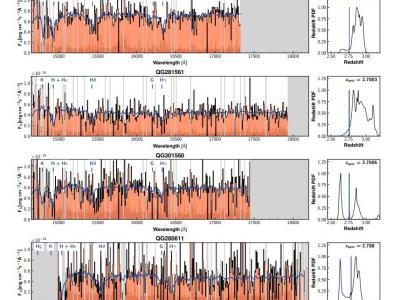 原星团QO-1000中四个静止星系的光谱,具有明显的吸收线。(Credit: Ito et al, 2023...