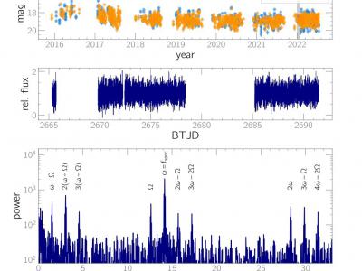 上图:J1344的长期ATLAS光曲线,由c波段和O波段观测组成。阴影区域表示TESS观测的时...