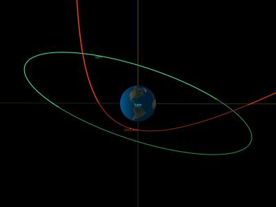 这张来自CNEOS近距离接近查看器的轨道图显示了2023 BU在2023年1月26日与地球近距离...