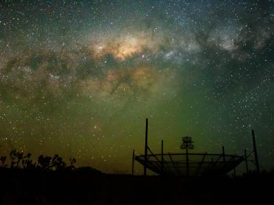 HERA阵列上方夜空中的银河系。望远镜只能在4月至9月之间观测,当时银河系低于地平线...