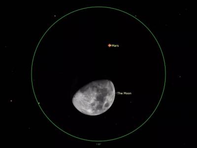 周一(1月30日)月掩火星的插图。 (图片来源:星夜软件)(神秘的地球uux.cn)据美...