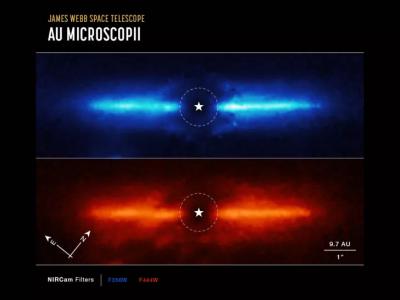 围绕这颗年轻恒星Au Mic的尘埃盘可能拥有几颗未知的系外行星。 (图片来源:NASA/E...