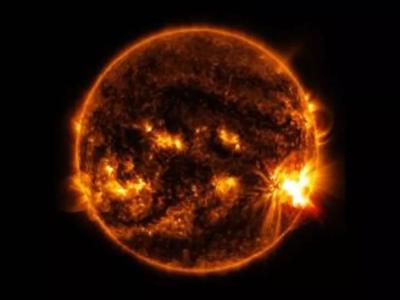 美国宇航局的太阳动力学天文台于2014年10月27日拍摄了X2.0级太阳耀斑从太阳右下方爆...
