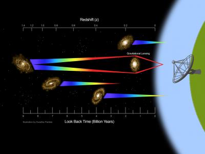 显示从不同距离的星系探测无线电波的插图。(图片来源:Swadha Pardesi)被称为“爱...