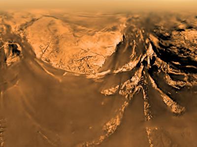 这张照片显示了惠更斯号探测器从10公里高空拍摄的土星卫星土卫六的扁平投影(墨卡托...