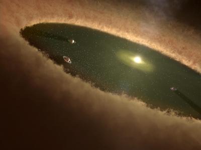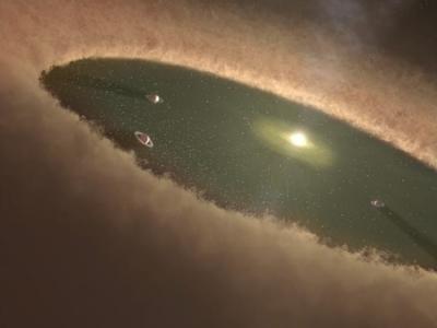 艺术表现恒星北落师门环绕盘中两个行星相撞的过程。图片来源:uux.cn托马斯·穆勒(...