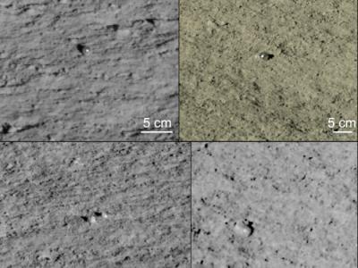 两个确认(上排)和疑似(下排)的玻璃珠(图像来源:中国航天局)阿波罗15号和16号宇...