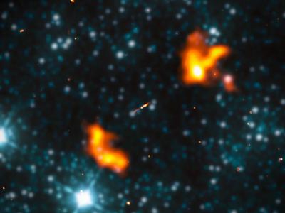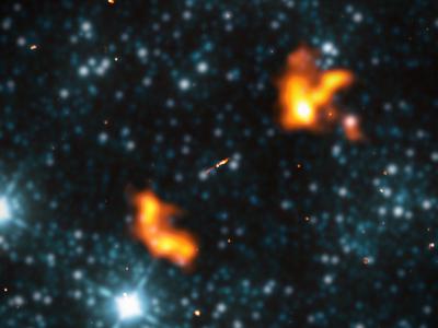 上图为Alcyoneus星系,左下及右上两片橘色的是电波瓣,上下长达1630万光年(神秘的...