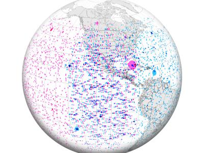 上图显示了2017年7月至2022年1月期间,由GOES-16和GOES-17上的GLMs探测到的3000多次...