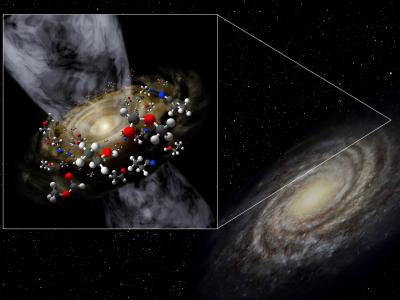 天文学家首次在银河系边缘发现一颗新生的恒星和周围复杂的有机分子的“茧”上图为用...