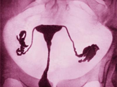 这张色彩增强子宫输卵管摄影显示女性生殖系统,包含输卵管和健康的子宫。PHOTOGRAP...