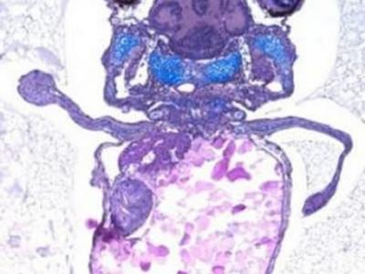 这只斑马鱼胚胎的鱼鳍顶部细胞中被引入HoxD13蛋白质之后,它发育出的肢体更像是一...