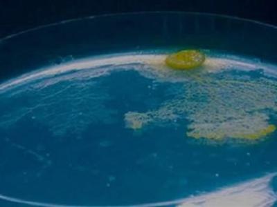 当黄色的粘液菌移动的时候会留下一道浓厚的半透明粘液,研究人员发现粘液菌把这种...