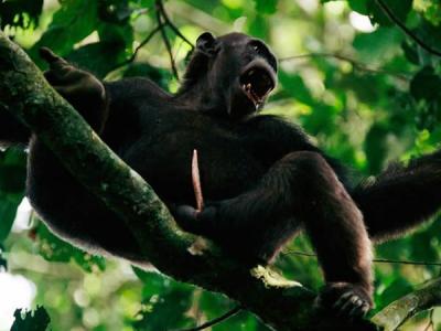 雄性黑猩猩站在树梢吼叫 研究表明 人类在进化过程中就丢失了阴茎脊柱 DNA“转...