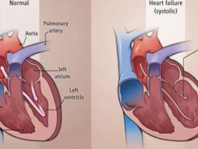 心脏衰弱。在收缩性心力衰竭,削弱的心室肌壁收缩使得较少的血打入循环。此图片显...